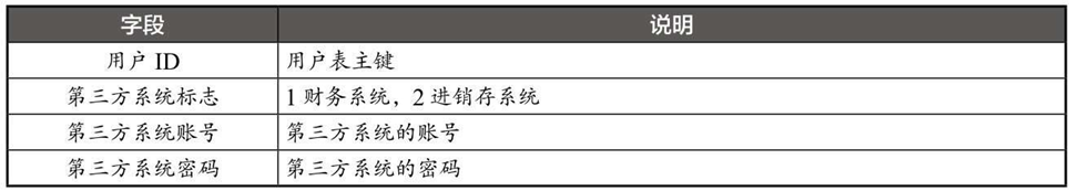 为了完成账号绑定,简单的办法就是在OA系统中提供一个账号绑定的功能,让用户录入其在第三方系统中的账号和密码,把其他系统的账号和密码都保存下来并与自己的账号形成映射关系。例如,可以在OA系统中按表4-8进行绑定。