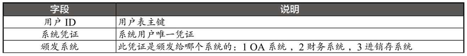在第三方系统中新建用户凭证表,可以做很多的自主控制,安全性牢牢地把控在各系统自己的手中,如表4-12所示。
