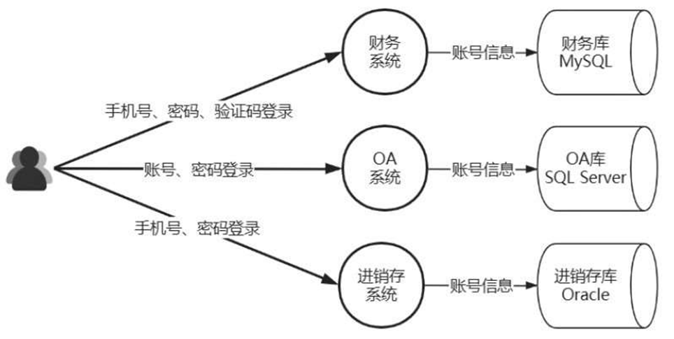 (2)     彼此之间难以建立关联关系,各个系统的登录流程各不相同,有的系统采用账号+密码登录,有的系统采用手机号+密码登录,等等。