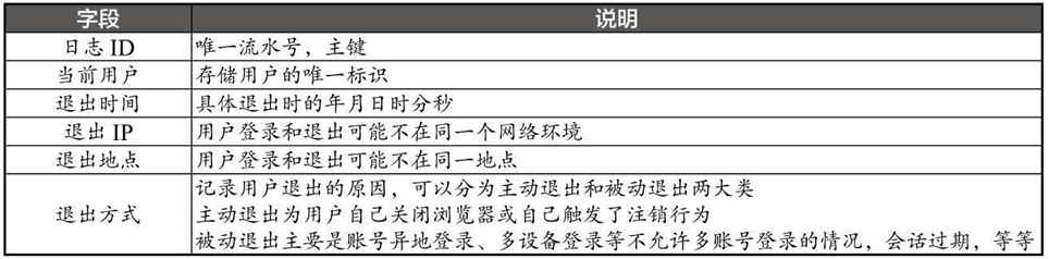 退出日志记录表的结构如表6-3所示。