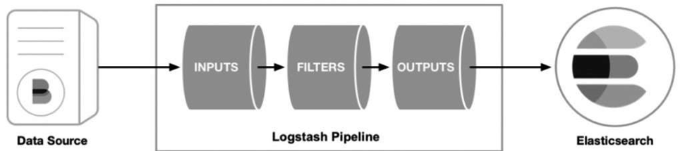 是从不同的数据源接收日志数据,经过过滤器组件进行过滤清洗和结构转换,最后经过输出组件进行输出,可以直接输出到Elasticsearch数据库中。如果不使用过滤器组件,则接收数据后直接输出到存储引擎中。