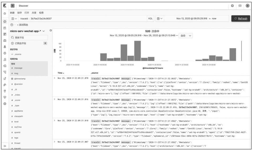 (3) 具有链路追踪能力:能够一次性查询到单笔交易中的所有日志。