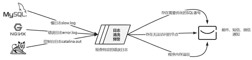 (1) 对于MySQL可以监控它的慢日志(默认为slow.log),当发现慢SQL时,发送邮件通知开发人员,存在SQL语句需要优化,不需要开发人员自己去排查问题。