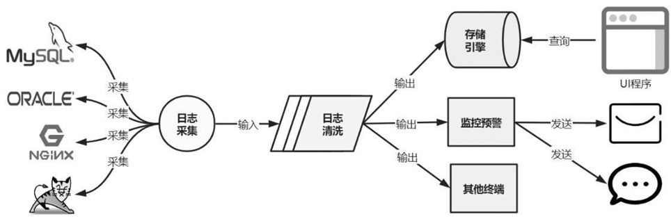 (1) 日志采集:可以从不同的数据源采集日志,可以是应用程序、数据库、中间件、网络、操作系统等。