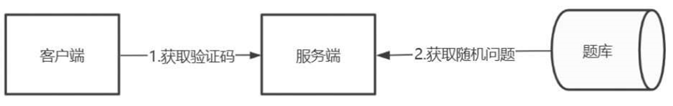 提问式图片验证码的设计并无复杂之处,如图7-7所示,只需要增加一个题库,用来存储问题和答案,客户端获取验证码时,则随机从题库中抽取一道题目生成图片验证码即可。题库中的问题越多,安全性越高,防止被机器人穷举攻击(尝试所有问题和答案)。