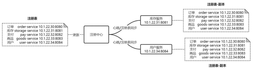 每个微服务都会在本地保存一份注册表副本(内存存储),同时与注册中心保持同步或订阅关系,当注册表发生变化时,副本也能立即发生变化。当发生服务调用时,微服务会先到本地的注册表副本中查找,查找不到才会去注册中心查找,以此来提高性能和可用性,就算注册中心宕机了,各个微服务依然可以凭借本地副本继续运行。