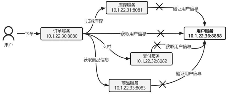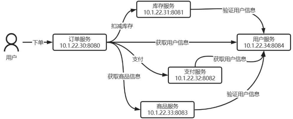 (10.1.22.34:8084变为10.1.22.36:8888),则与之发生调用关系的库存服务、订单服务、支付服务、商品服务都必须及时修改,否则将会导致大量请求超时,造成系统级联故障。
